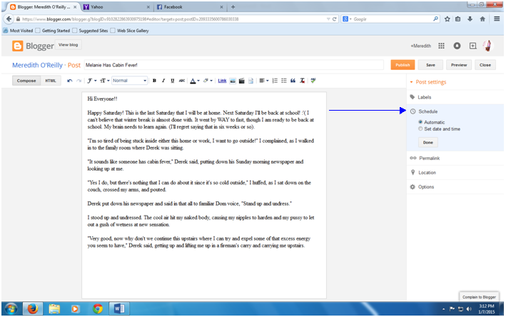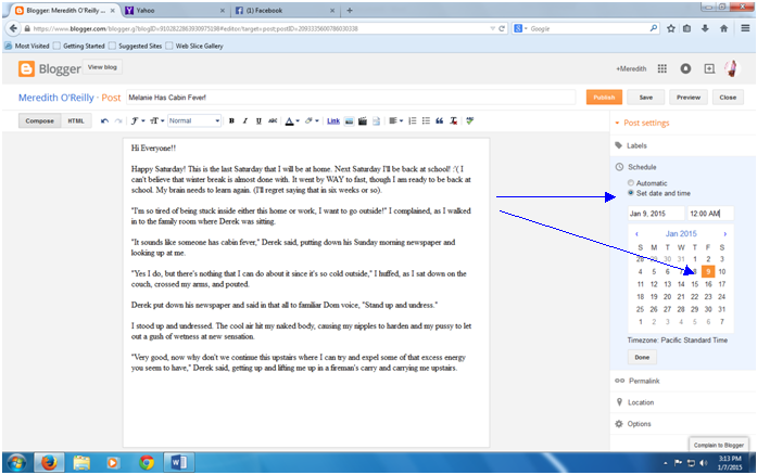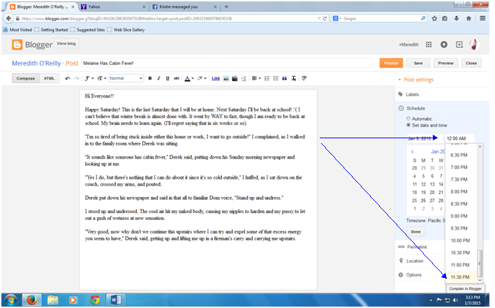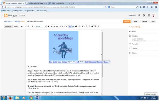 scheduled to show up for readers to read on your blog on Friday, at 11:30 P.M.