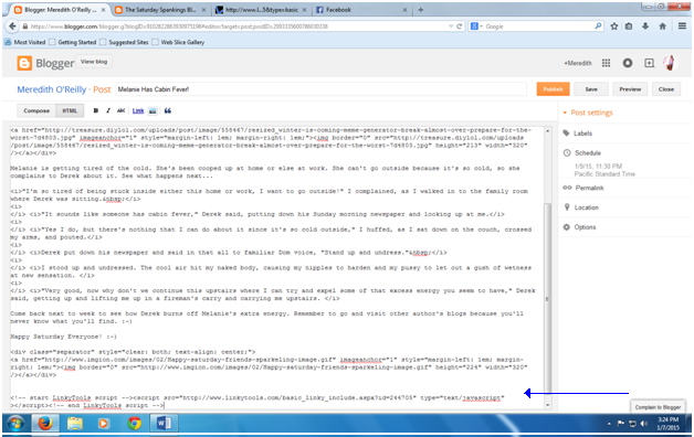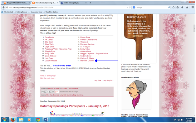 the Saturday Spankings home page. The URL for it is: http://www.saturdayspankings.blogspot.com