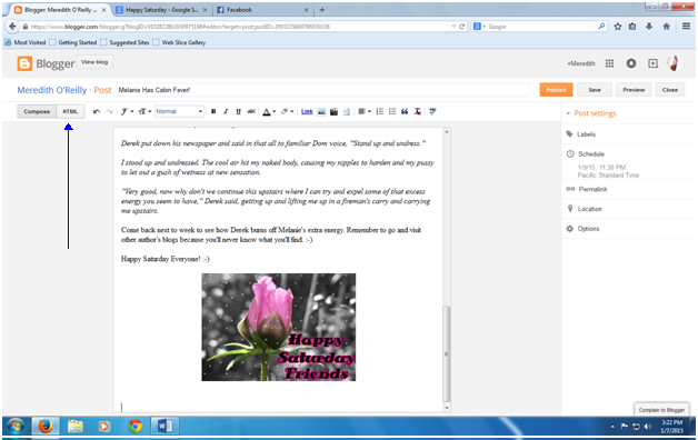 on the HTML button to turn your post in to that format. Warning: Your blog will